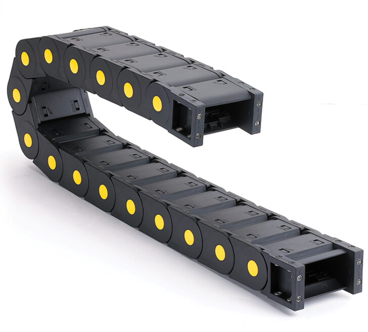 2、鋼鋁拖鏈每節(jié)都能打開(kāi),便于安裝和維修。運(yùn)動(dòng)時(shí)噪音低、耐磨、可高速運(yùn)動(dòng)。